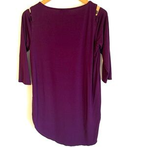 Stylish The Limited tunic top in a rich purple hue featuring subtle cutout shoulder detail for a modern touch. Soft, lightweight knit fabric with a flattering relaxed fit. Longer tunic length offers great coverage—perfect with leggings or skinny jeans. Versatile enough for work or casual wear.