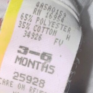 Beautiful vintage baby dress in size 3–6 months, featuring a classic floral print with a white Peter Pan collar and rosette detail at the neckline. Sweet heirloom styling with gathered skirt and cuffed short sleeves. Perfect for photos, special occasions, or collectors of vintage children's clothing.