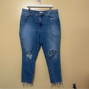 Good American Good Classic Raw Hem Ripped Jeans Womens 18 Blue
