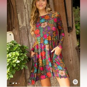 Natural Life Stevie "ButterSoft" Knit Mini Dress S rainbow garden long sleeve B