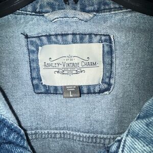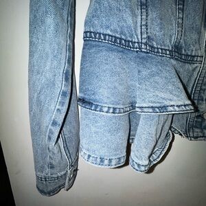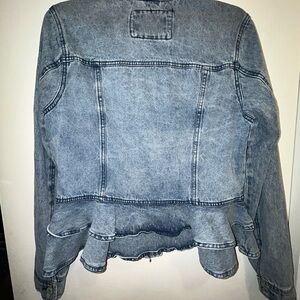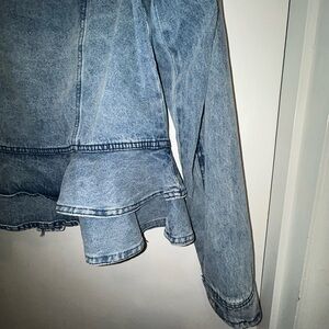 Very Trendy Ashley Vintage Charm Denim Jacket W/2 Layers of Ruffles at Hem, Sz L
