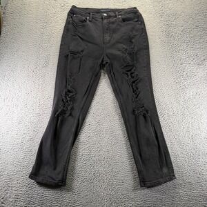 Aeropostale Jeans Women 32x29 Black Cotton Denim Mom Distressed Workwear Travel