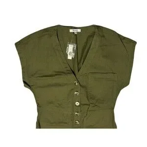 NEW Madewell Womens Size XS Kale Green Cap Sleeve Cotton Utility Jumpsuit $138
