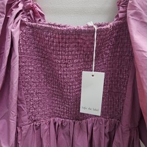 NWT Puff Sleeve Pink Smocked Coquette Dress Size L Cottagecore Wedding Party
