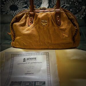 Valentine's Day on sale low price deal , authentic Vintage MCM Rich Brown Leather Satchel shoulder bag tote bag , inside so clean , very good condition other people sale $750, I only sale $389, so soft leather. With authentic paper., buy this vintage MCM bag will give you one brand new dusty bag for free