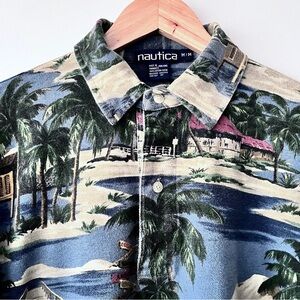 Men’s 90s Vintage Nautica Hawiian Tropical Printed Polo Cotton Shirt Size M