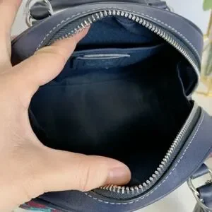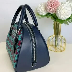 This Coach satchel showcases a sophisticated SV/Teal/Wine color scheme, highlighted by a striking two-tone design. Its structured dome shape and refined leather accents make it a versatile accessory for any occasion. The bag's detachable shoulder strap offers added convenience for effortless style.