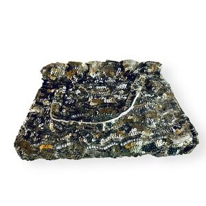 Vintage 1960s Sequin Evening Bag Clutch Silver Made In Belgium