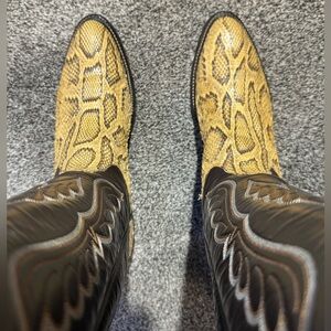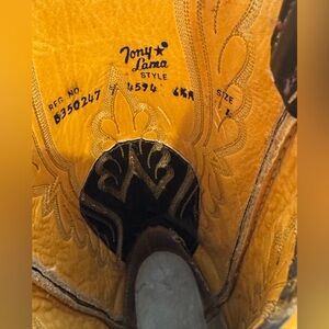 This is a very fine pair of vintage Tony Lama Gold Label Women’s Exotic Western Boots Size 6.5 A Snakeskin. These are made in the USA, and are in excellent condition. No holes or stains or smells or major scuffs. These are in amazing condition. Super comfortable and well-built exotic cowgirl boots.