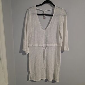 Step into elegance with this beautiful white knit beach coverup. Perfect for a stylish and comfortable day by the sea.