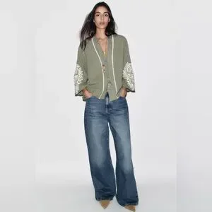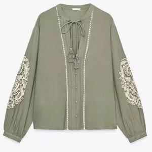ZARA CONTRAST EMBROIDERY BLOUSE