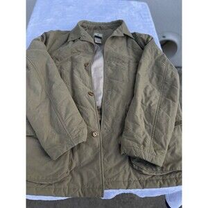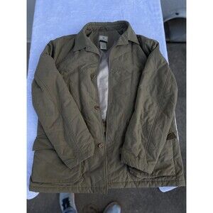 This vintage Beretta Sport Thermore Quilted Jacket is a stylish and functional piece for any man's wardrobe. Made in Italy, it features a rich olive green color and is designed in size 48. The jacket is pre-owned but in good condition, showing minimal signs of wear. It is crafted from corduroy fabric and includes quilted accents for added warmth and style. Perfect for outdoor activities or casual wear, this jacket combines comfort with a sporty aesthetic.
