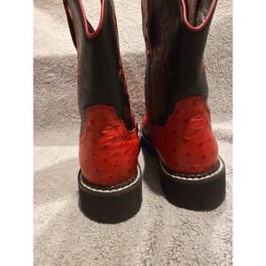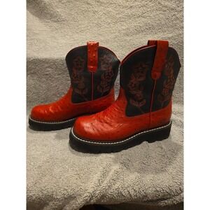 Ropers Women's Red And Black Boot With Flower Stiching Ostrich Print Size 5.5