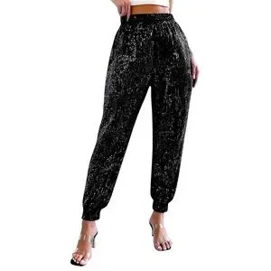 Shine in style with these stunning sequin black pants. Perfect for a night out or special occasion.