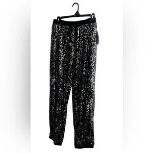 NWT SCOOP Bling Sequin Joggers SIZE XL 16/18 STRETCHY.. Sequin joggers with an elastic waistband and pocket. They are fully lined and ankle-length, depending on your height, please check measurements. The length is approximately 38 inches. The waist is adjustable; it could fit a size 1X as well… They look great with the Bling Jacket and heels or sandals. They also look great with a tank top and sneakers… First three photos for reference only!