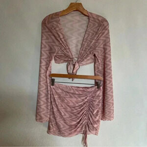 Abound groovy wavy pattern adds retro-inspired style to top and bottom fashioned with a tie-front closure. In great condition