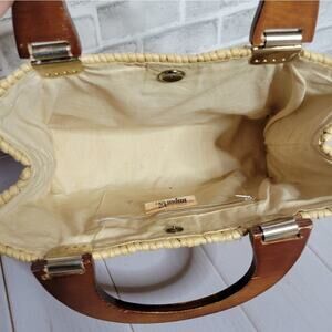 Vintage Italian Woven Straw Bag with Wooden Handles