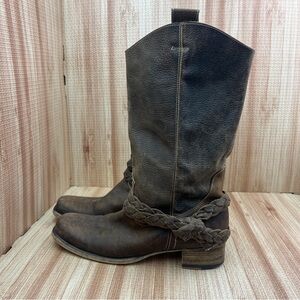 Bed Stu Boots Womens 8.5 Brown Leather Riding Sapphire Braided Pull On Mid Calf