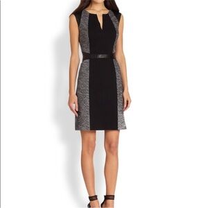 Rebecca Taylor Caitylin Wool Tweed Lamb Leather Trim Shift Dress Size 12 EUC
