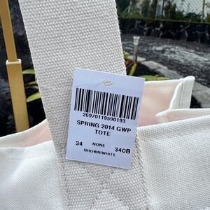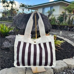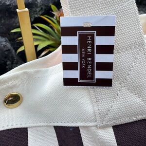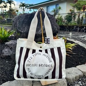 Henri Bendel Brown & White Canvas Stripe Tote 712 Fifth Avenue NYC