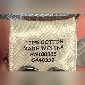 Brand new with tags. Size large. Longsleeve Casual button down. Plaid. Blue And light brown. Logo on lower left hem. Left chest pocket. Button cuffs. Measurements and fabric content listed above in pictures.