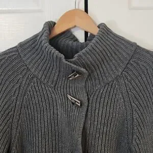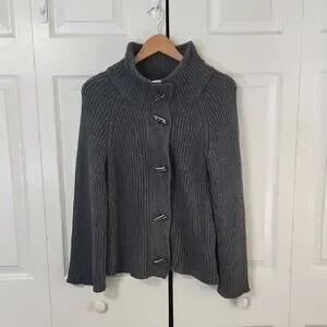 Vintage Talbots Wonens Gray Sweater Size Med Toggle Buttons Bell Sleeves Neutral