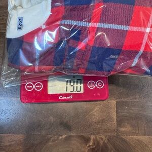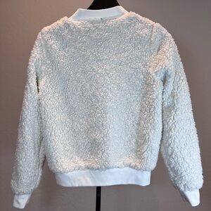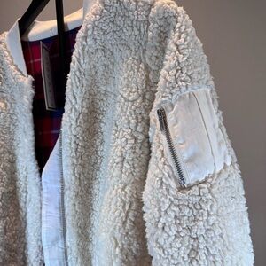 Reversible Sherpa/Plaid Bomber Jacket - Red/Blue/White and Sherpa. Size- XS