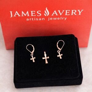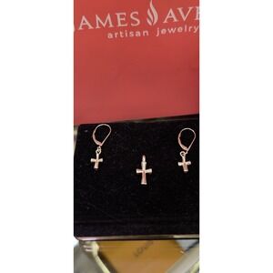 James Avery 14k gold cross pendant Set Earrings 14k Cross Leaver Back NEW