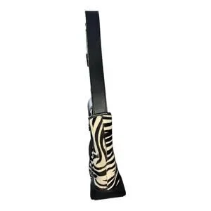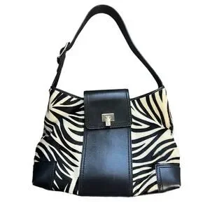 Beautiful zebra print bag with a calf hair exterior, turn lock closure , black leather straps with silver color hardware, luxe gray suede interior, clean inside, greet condition, perfect for a statement piece to add to your outfit with a Y2K style. Comes with dust bag and authentication card.