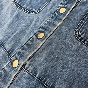 Cotton romper! Good used condition, wear as pictured. Natural wear on edge of the placket, fabric, and near the bottom button, but also came new with intentional fabric wear. (See original product photo)
