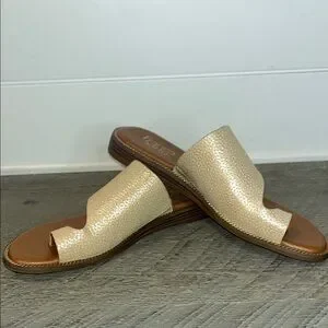 Franco Sarto Womens Pebbled/Metallic Gem Leather Slip On Slide Sandals - Size 8