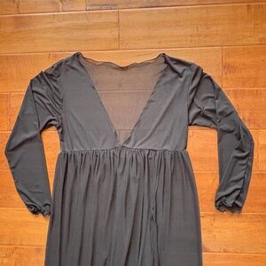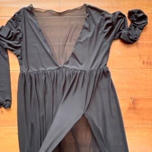 Y2K Sheer Mesh High-Slit Maxi Black Dress M 3/4 Sleeve