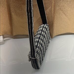 Anthropologie Black and White Beaded Shoulder Bag