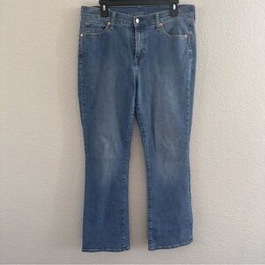 Classic Gap Baby Boot mid-rise jeans in a flattering light wash.