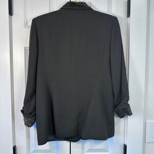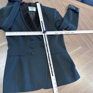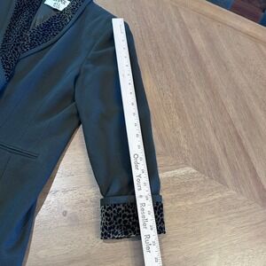 Kasper ASL Petite Black Leopard Trim Double Breasted Blazer Pants Suit Set 6P