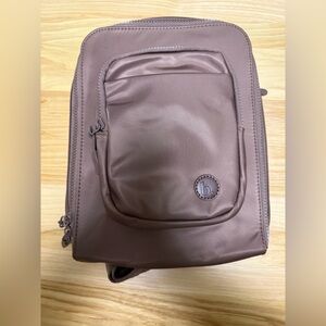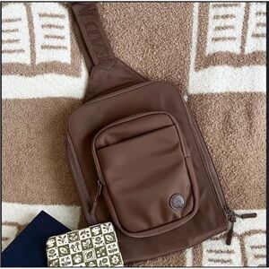 New without tags, never used. Clean interior, no flaws. Adjustable strap, multiple zip compartments, lightweight nylon material. Perfect everyday bag, travel sling, or gift for book lovers and readers. Neutral brown color and unisex style.