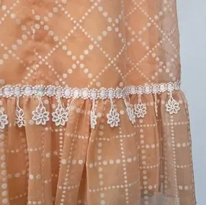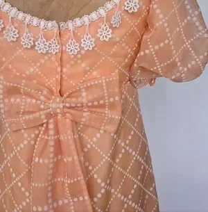 Vintage Bridgerton Inspired Puff Sleeve Orange Cream Bow Back Crochet Fringe Dress, XS/S