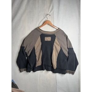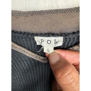 POL Womens Oversized Patchwork Thermal Knit Top Charcoal Taupe Large PKT1058A