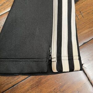 Adidas Primeblue 3 Stripe Track Pants Black with White Zip Leg Pocket Women's XS. Excellent condition. Zippered pockets, zip leg, elastic and drawstring waist. See photos for details and measurements. Shop my closet for more Men's and Women's athletic apparel and so much more! Bundle items to save by only having one shipping fee.