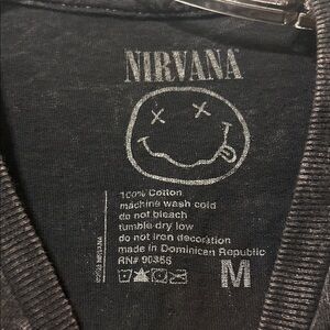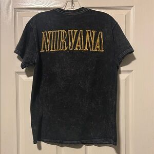 Stylish black unisex t-shirt featuring a bold graphic design from Nirvana. Perfect for casual wear and for those who enjoy good music.