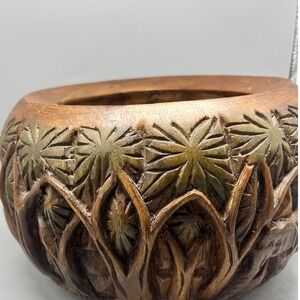 Vintage Hand Carved Wooden Bowl Elephants And Trees 3 D carving