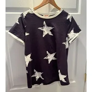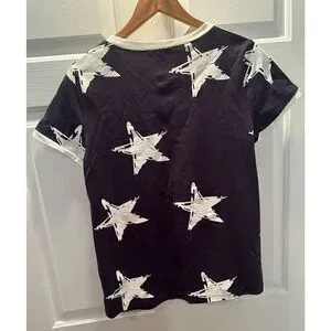 Mazik Women’s Blue and White Star Short Sleeve T-Shirt Shirt Size Large