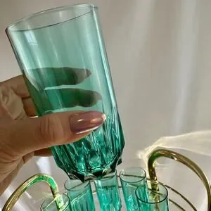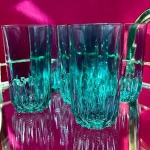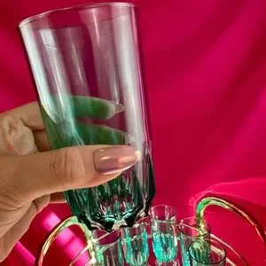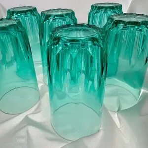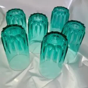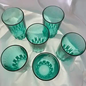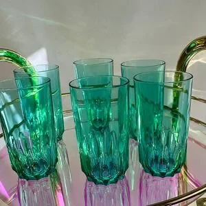 Keywords: green glassware, vintage glasses, luminarc, barware, holiday entertaining, christmas barware, retro glassware, cocktail glasses, vintage home decor, bar cart decor, hostess gift, colorful glassware, 1980s glass, set of 6, six glasses, mid-century glasses, teal glasses