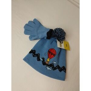 Children's Youth Kids Snoopy Woodstock Pom Pom Beanie Hat Cap & Mittens New Knit