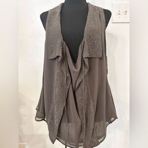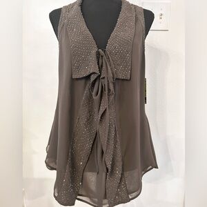 NWT Robbi & Nikki Womens Embellished Sleeveless Blouse Charcoal Size XS