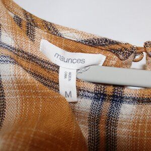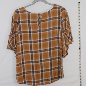Maurices plaid round neck short ruffle flared sleeves keyhole back closure M