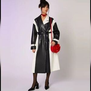 FORVER 21 "Beetlejuice" Black and White Striped Trench Coat XS