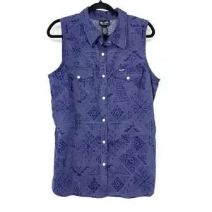 Wrangler Retro Snap Front Sleeveless Shirt Womens Sz XL Blue White Western Print