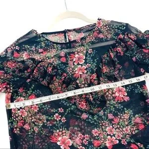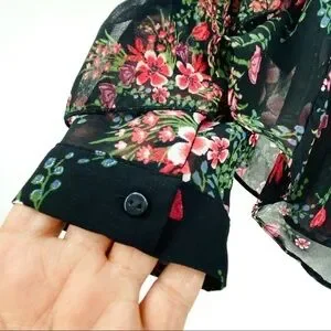Zara Women Sheer Floral Long Sleeve Ruffled Layered Pink Black Cuffed Blouse SzM