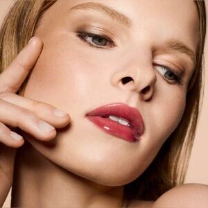 Fenty Beauty's Gloss Bomb delivers a radiant red tinted shine. Perfect for a bold, glossy look.